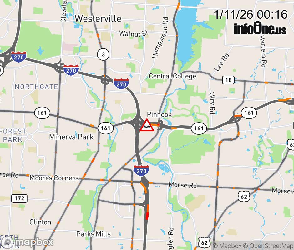 All lanes are blocked on Ramp I-270 North to SR-161 East, due to a crash. ![]() |