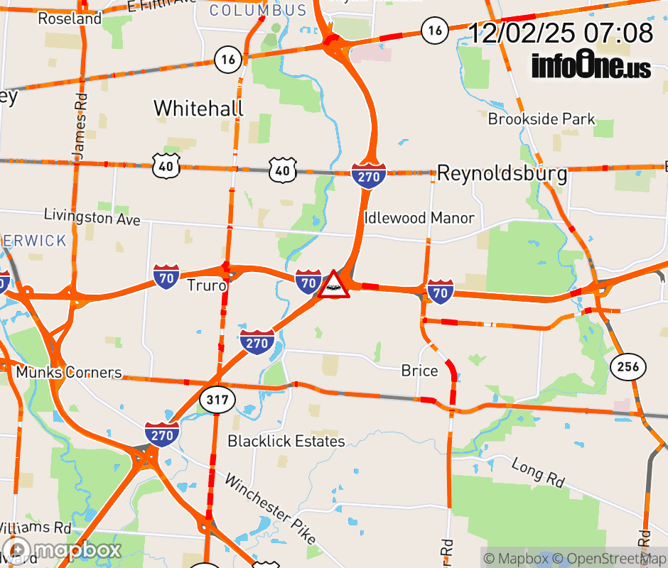 Ramp I-70 West to I-270 South CLOSED because of a crash. ![]() |