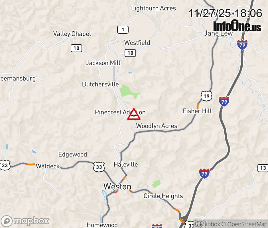 Vehicle Crash on CR-12 (609 Jackson Mill Rd.). The northbound road is closed. The southbound road is closed. Updated: Thu 11/27/25 6:06 PM EST ![]() Updated: Thu 11/27/25 6:06 PM EST |