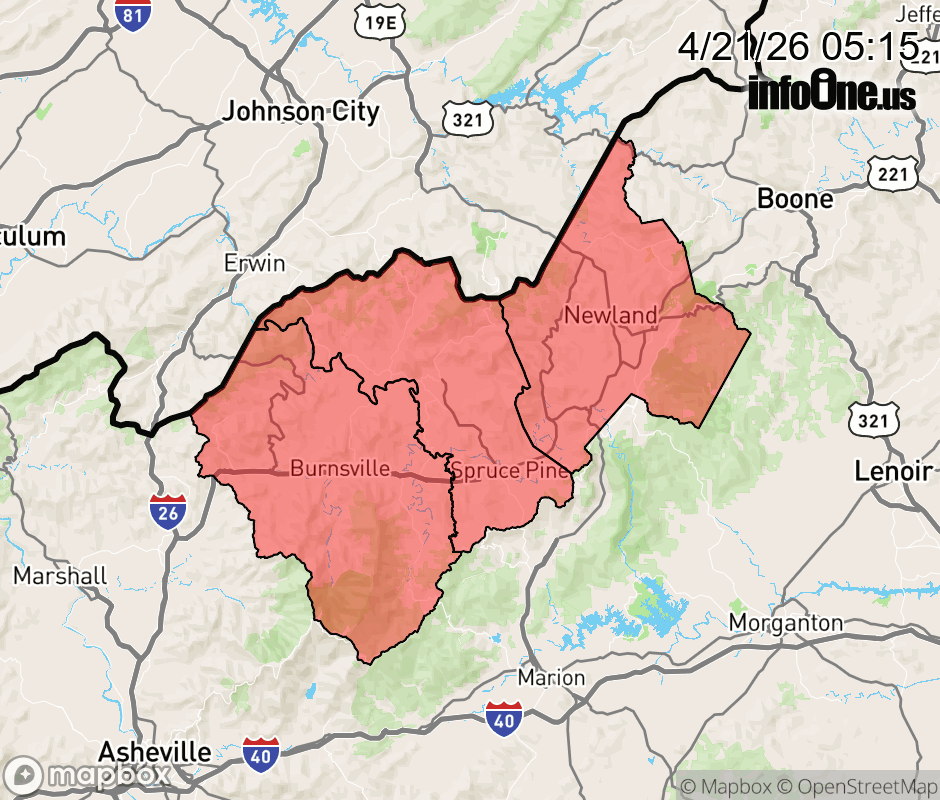 Freeze Warning issued April 21 at 5:14AM EDT until April 21 at 9:00AM EDT by NWS Greenville-Spartanburg SC * WHAT... Sub-freezing temperatures as low as 31. * WHERE... Avery, Mitchell, and Yancey Counties. * WHEN... Until 9 AM EDT this morning. * IMPACTS... Frost and freeze conditions could kill crops, other sensitive vegetation and possibly damage unprotected outdoor plumbing. ![]() |
