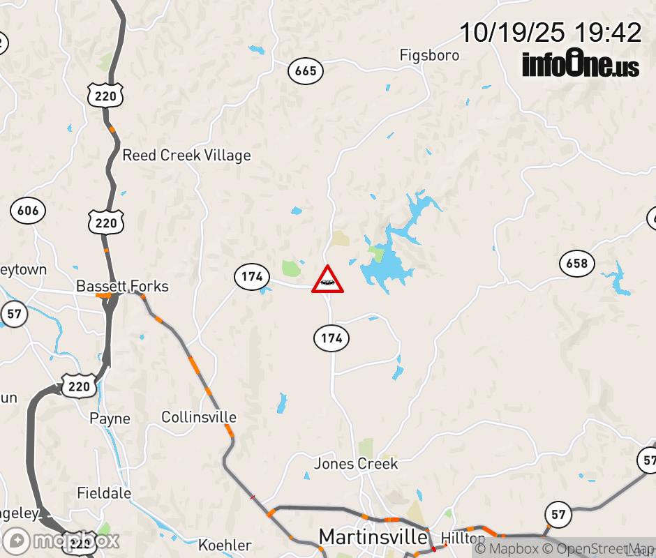 On VA-108 North in the County of Henry, in the vicinity of College Dr; Rt. 714N/S (Henry County), motorists can expect delays due to a vehicle crash. Lane closures exist. ![]() |