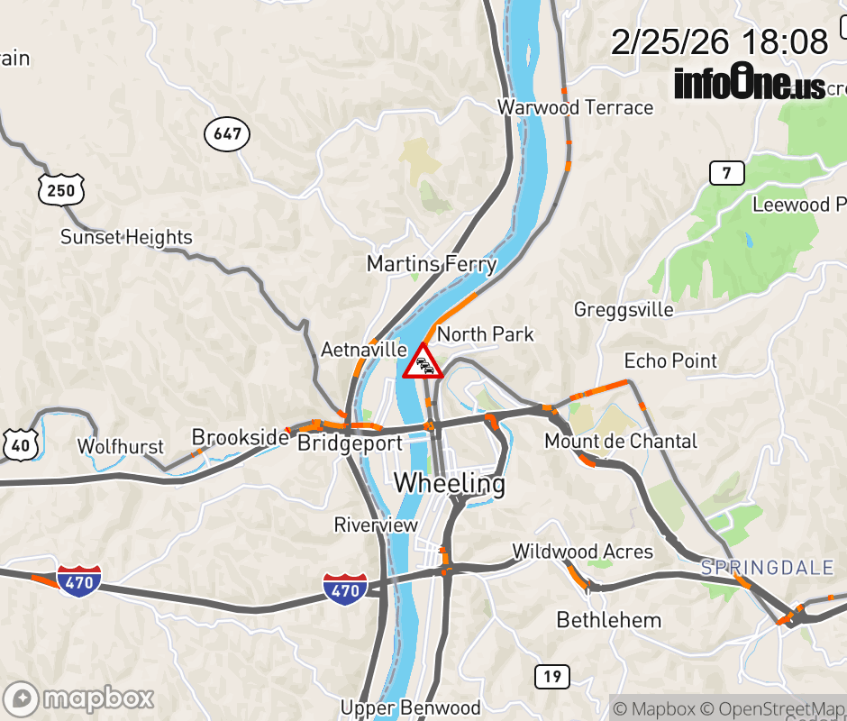 Road Closure on WV-2 (Main Street @ 3rd Street). The westbound road is closed. The eastbound road is closed. Updated: Wed 2/25/26 6:08 PM EST ![]() Updated: Wed 2/25/26 6:08 PM EST |