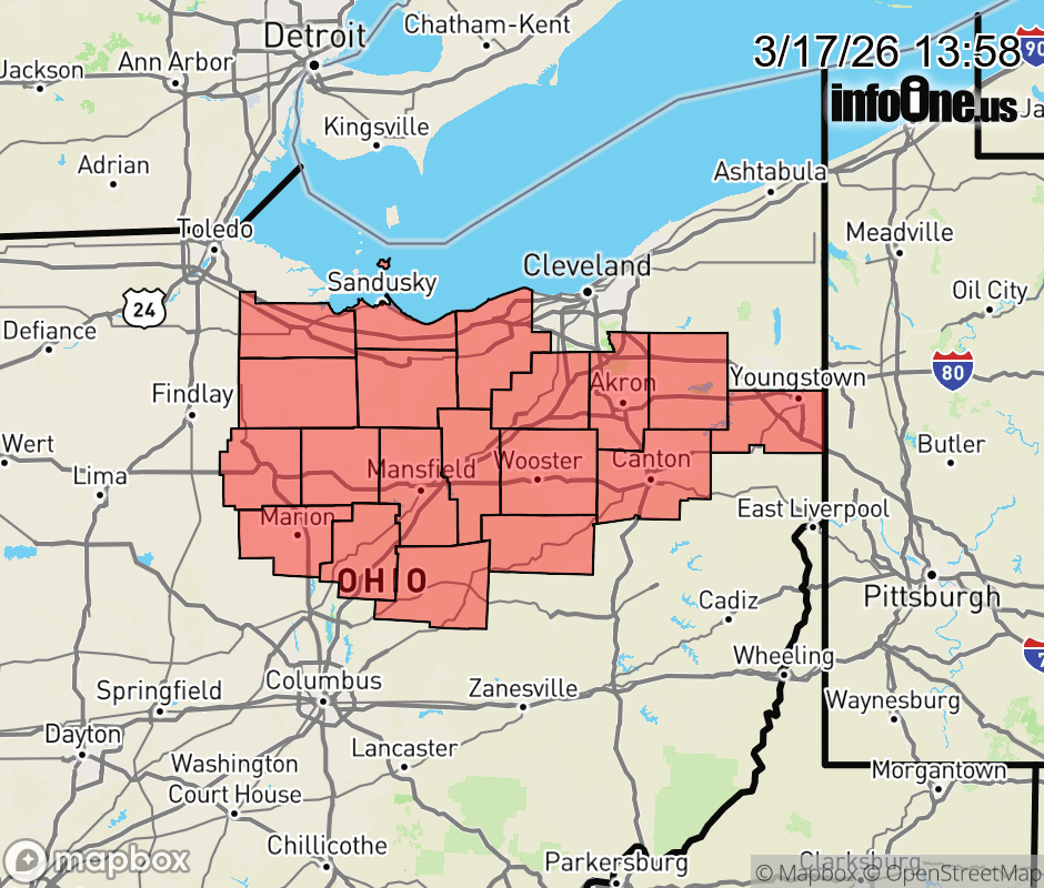Canceled 3/17/26 5:00 PM Special Weather Statement issued March 17 at 1:56PM EDT by NWS Cleveland OH Scattered snow showers are moving east to southeast across the area this afternoon. Some more intense snow showers are briefly dropping visibility to less than one-quarter of a mile and coating roadways with snow. Motorists should slow down and use caution when encountering snow showers. Changeable visibility and road conditions are likely. ![]() |