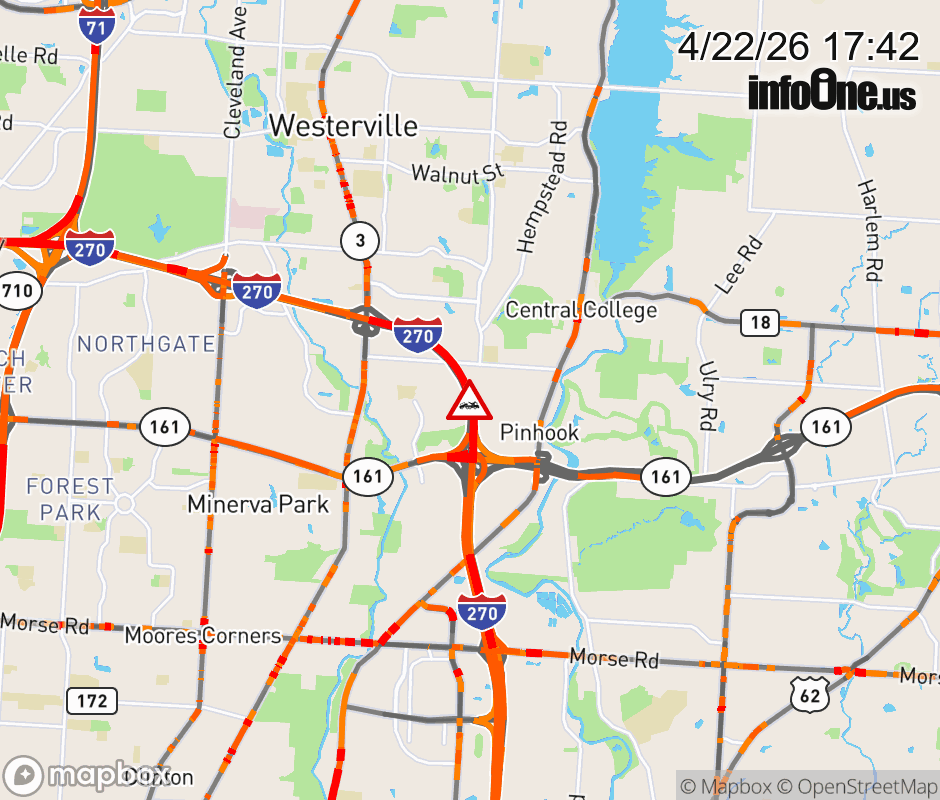 The right lane is blocked on I-270 North beyond SR-161, due to a disabled vehicle. ![]() |