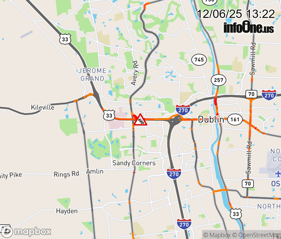 The left lane is blocked on US-33/SR-161 West at Avery - Muirfield Dr, due to repairs/maintenance. Updated: Sat 12/6/25 1:22 PM EST ![]() Updated: Sat 12/6/25 1:22 PM EST |