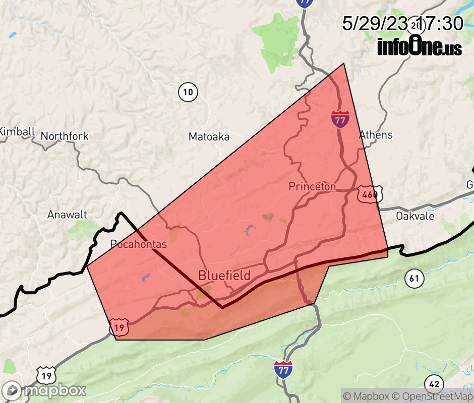 Canceled 5/29/23 7:05 PM Flood Warning issued May 29 at 5:29PM EDT until May 29 at 8:45PM EDT by NWS Blacksburg VA * WHAT... Flooding caused by excessive rainfall continues. * WHERE... Portions of southwest Virginia and southeast West Virginia, including the following counties, in southwest Virginia, Bland and Tazewell. In southeast West Virginia, Mercer. * WHEN... Until 845 PM EDT. * IMPACTS... Flooding of rivers, creeks, streams, and other low-lying and flood-prone locations is imminent or occurring. * ADDITIONAL DETAILS... - At 529 PM EDT, Local law enforcement reported slow moving thunderstorms with very heavy rainfall across the warned area. - This includes the following streams and drainages... Blacklick Creek, Bluestone River, Brush Creek, Big Spring Branch, Bratton Branch and Beaver Branch. - Some locations that will experience flooding include... Bluefield, Princeton, Rocky Gap, Camp Creek, Pocahontas and Bramwell. - http://www.weather.gov/safety/flood ![]() |