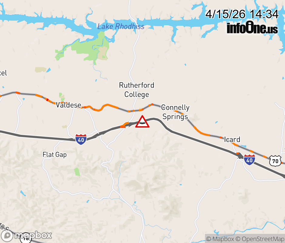 The right shoulder is closed after Exit 113, Rutherford College Road. Updated: Wed 4/15/26 2:34 PM EDT ![]() Updated: Wed 4/15/26 2:34 PM EDT |