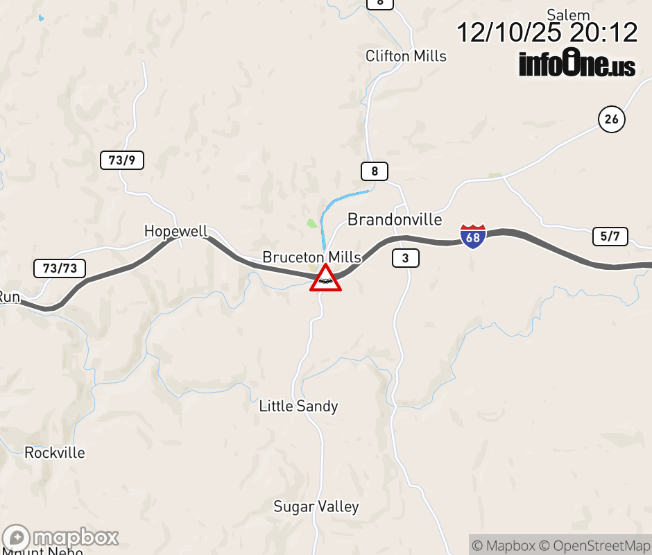 Canceled 12/10/25 9:46 PM Location: I-68 at MM 23.0, WV Accident.
