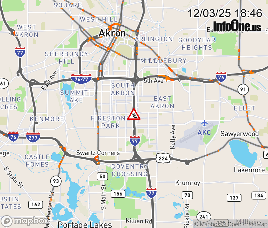 The right lane is blocked on I-77 North beyond SR-764/ Wilbeth Rd/Waterloo Rd, due to repairs/maintenance. ![]() |