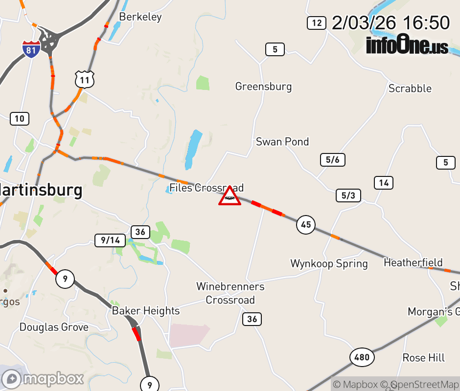 Vehicle Crash on WV-45 (3600 BLK of Shepherdstown Rd) in Blairton . ![]() |