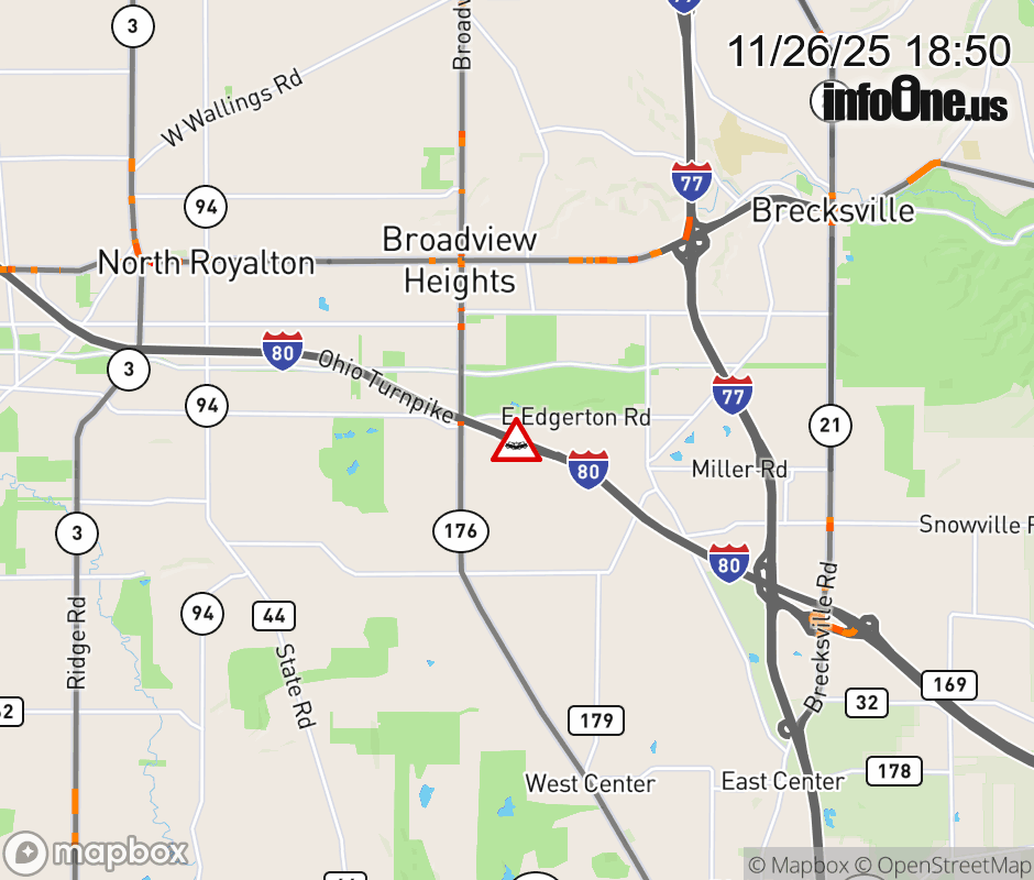 Expect lane closures on I-80 West (Ohio Turnpike) beyond I-77, due to a crash. ![]() |