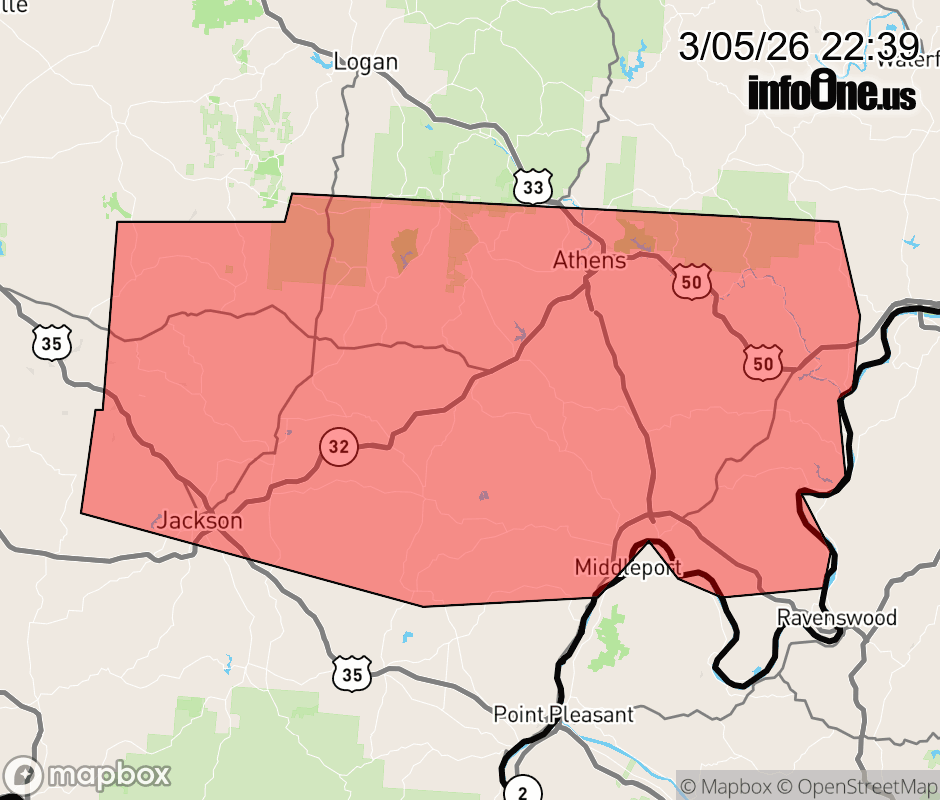 Canceled 3/6/26 4:40 AM Flood Warning issued March 5 at 10:37PM EST until March 6 at 7:00AM EST by NWS Charleston WV * WHAT... Flooding caused by excessive rainfall continues. * WHERE... A portion of southeast Ohio, including the following counties, Athens, Gallia, Jackson, Meigs, Vinton and Washington. * WHEN... Until 700 AM EST Friday. * IMPACTS... Flooding of rivers, creeks, streams, and other low-lying and flood-prone locations is imminent or occurring. Low-water crossings are inundated with water and may not be passable. * ADDITIONAL DETAILS... - At 1034 PM EST, rises on some creeks and streams continue due to runoff from the rain Wednesday night. This has resulted in several flooded roads across the warned area. Some larger creeks experiencing minor flooding include and the Shade River and the upper reaches of Raccoon Creek. - In the Chester community, the river gauge on the Shade River had fallen below bankfull. However, low spots on Scout Camp Road near Sugar Run Creek bridge may still be experiencing backwater issues, and low lying areas adjacent to the river are likely still flooded, including a few agricultural fields. Flooding of low-lying areas along the Hocking River is also possible overnight. - Some locations that will experience flooding include... Athens, Jackson, Wellston, Pomeroy, Mcarthur, Albany, Racine, Coolville, Rutland, Lake Hope State Park, Forked Run State Park, New Haven, Mason, Tuppers Plains, Middleport, Chester, Hamden, Syracuse, Hartford City and Coalton. - http://www.weather.gov/safety/flood ![]() |