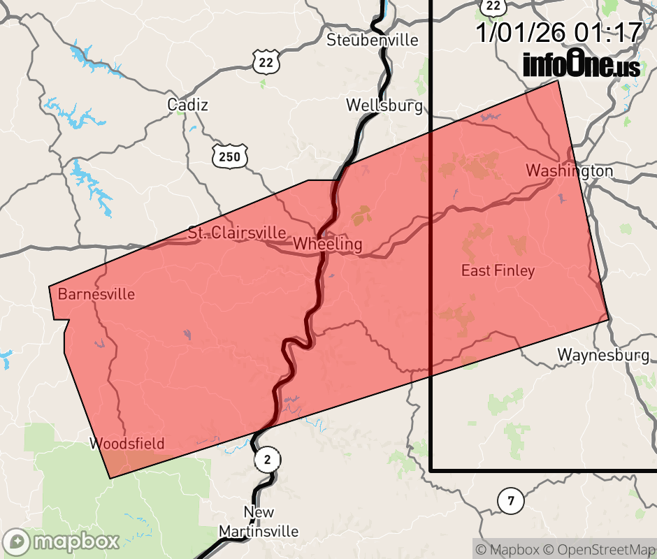 Canceled 1/1/26 1:30 AM Snow Squall Warning issued January 1 at 1:16AM EST until January 1 at 2:00AM EST by NWS Pittsburgh PA At 116 AM EST, a dangerous snow squall was located along a line from over East Washington to near Barnesville, or along a line from near Washington to near Barnesville, moving south at 20 mph. HAZARD...Intense bursts of heavy snow and gusty winds leading to blowing snow and rapidly falling visibility. Wind gusts up to 35 mph. SOURCE...Radar indicated. IMPACT...Travel will become difficult and potentially dangerous within minutes. Locations impacted include... Wheeling, Washington, Moundsville, Martins Ferry, St. Clairsville, Bellaire, Barnesville, Warwood, Bethlehem, Woodsfield, West Liberty, Triadelphia, Clearview, Valley Grove, Shadyside, Wolfdale, East Washington, McMechen, Powhatan Point and Glen Dale. This includes the following highways... Interstate 70 in West Virginia between mile markers 0 and 14. Interstate 70 in Pennsylvania between mile markers 0 and 18. Interstate 70 in Ohio between mile markers 207 and 225. Interstate 79 in Pennsylvania between mile markers 20 and 22...and between mile markers 38 and 39. ![]() |