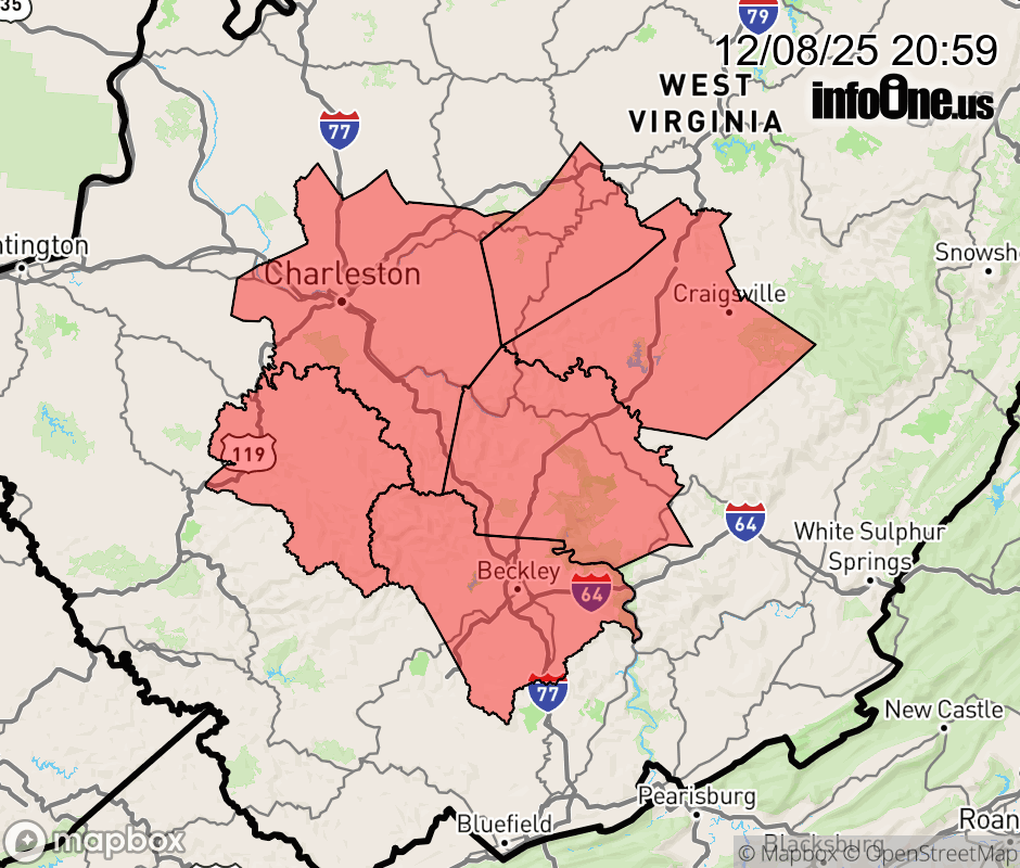Canceled 12/8/25 9:00 PM Winter Storm Warning issued December 8 at 8:57PM EST until December 8 at 9:00PM EST by NWS Charleston WV The snow was diminishing, with little if any additional accumulation expected. Therefore, the Winter Storm Warning is allowed to expire. However, roads will be slick through the overnight due to nighttime refreezing of snow melt, in addition to any remaining snow. ![]() |