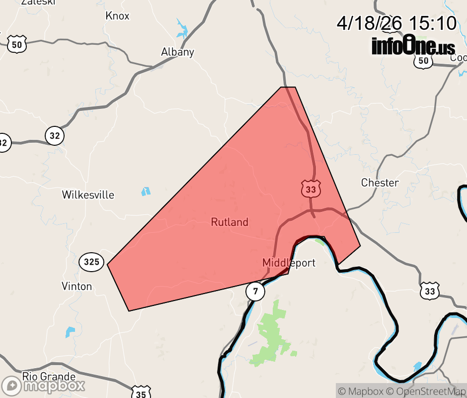 Canceled 4/18/26 3:30 PM Special Weather Statement issued April 18 at 3:09PM EDT by NWS Charleston WV At 309 PM EDT, Doppler radar was tracking a strong thunderstorm near Rutland, moving northeast at 55 mph. HAZARD...Wind gusts up to 40 mph and pea size hail. SOURCE...Radar indicated. IMPACT...Gusty winds could knock down tree limbs and blow around unsecured objects. Minor hail damage to vegetation is possible. Locations impacted include... Pomeroy, Rutland, Middleport, Syracuse, Darwin, Harrisonville, and Kyger. ![]() |