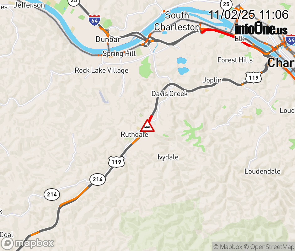 Vehicle Crash on US-119 (Corridor G North) & WV-214 (Oakhurst Dr/Green Rd) in South Charleston. Updated: Sun 11/2/25 11:06 AM EST ![]() Updated: Sun 11/2/25 11:06 AM EST |