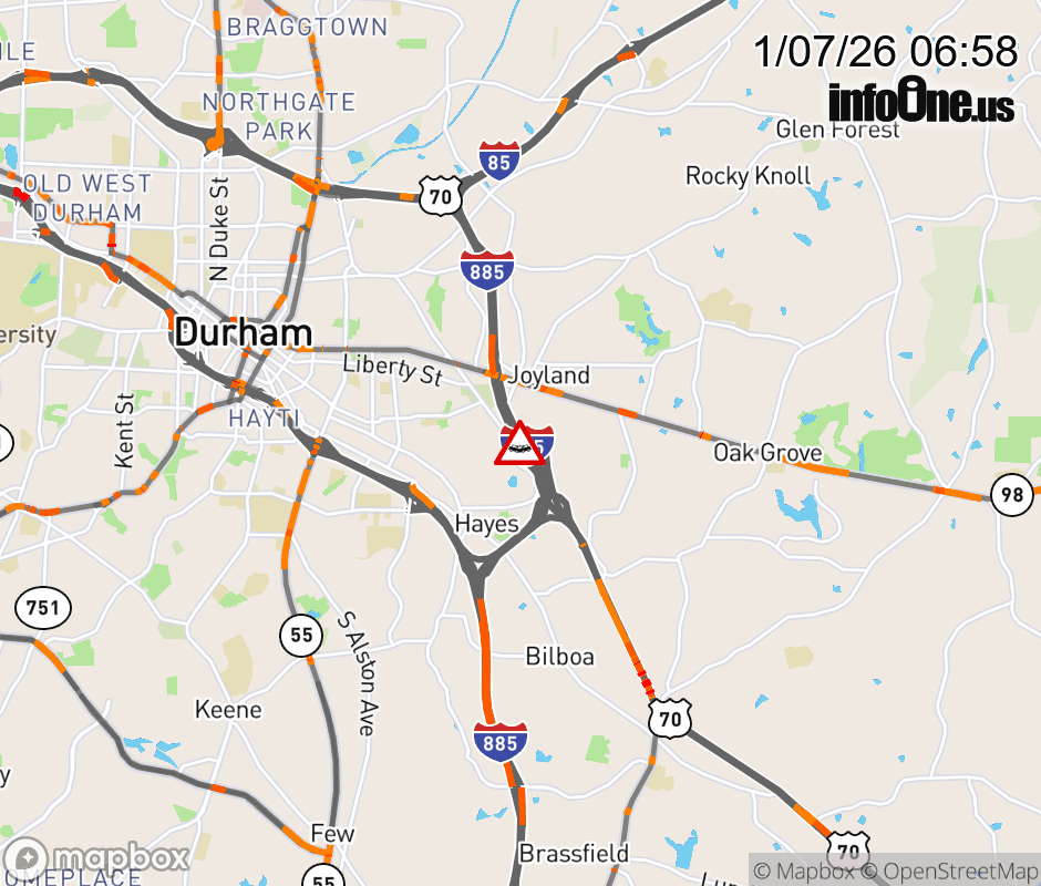 The right shoulder is closed near Exit 10 (US 70) Updated: Wed 1/7/26 6:58 AM EST ![]() Updated: Wed 1/7/26 6:58 AM EST |
