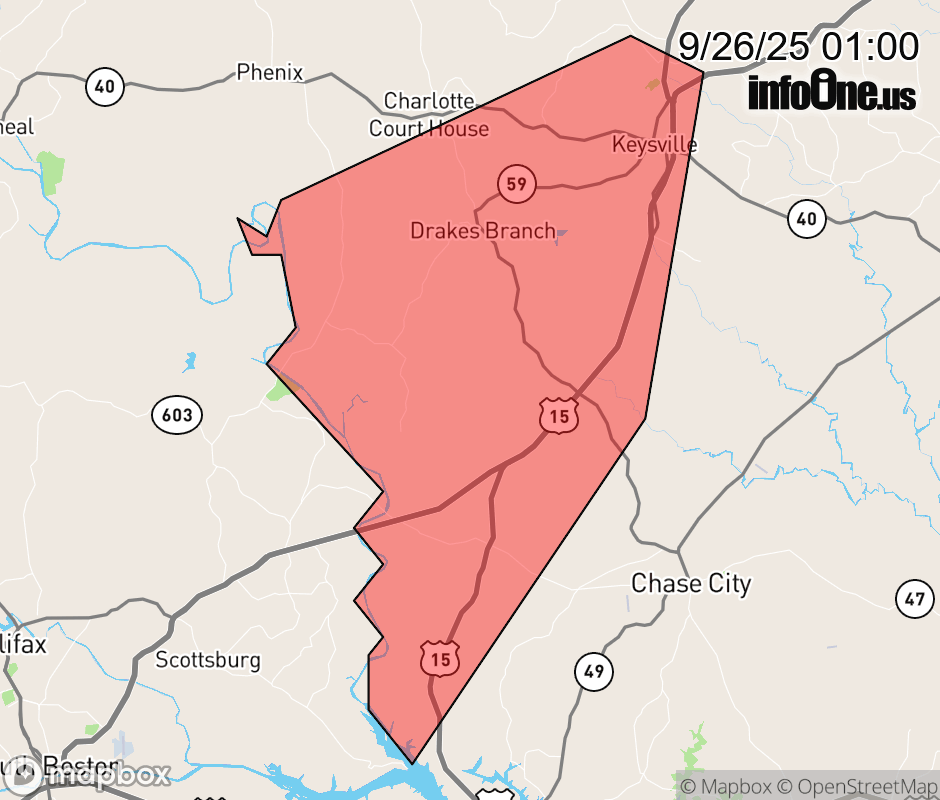 At 1257 AM EDT, a severe thunderstorm was located near Drakes Branch, or 7 miles south of Keysville, moving east at 35 mph.