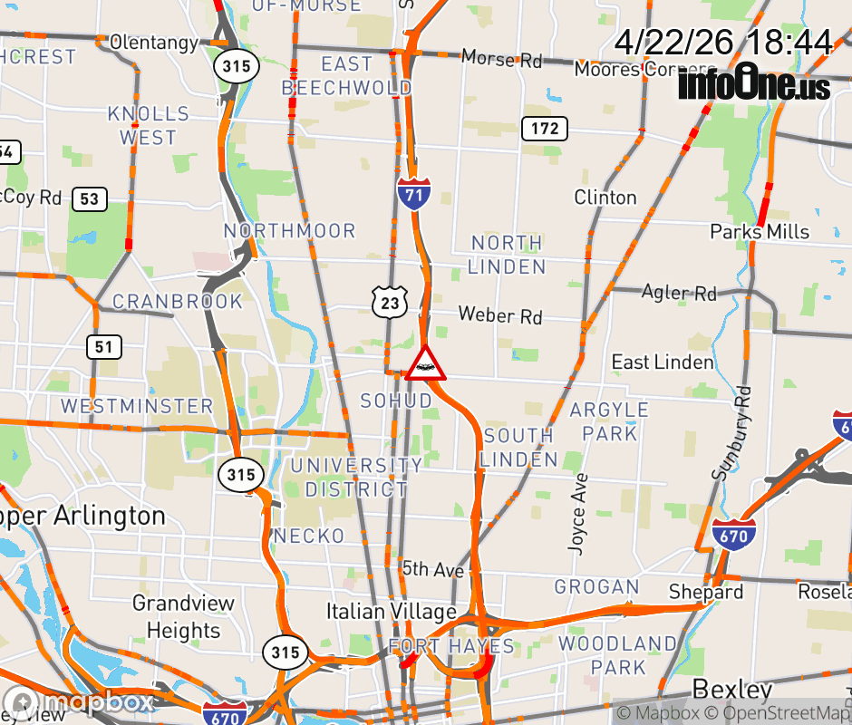 The left shoulder is blocked on I-71 North beyond Hudson St, due to a crash. ![]() |