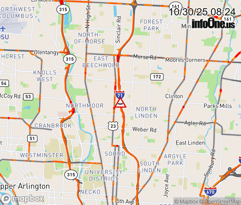 The left shoulder is blocked on I-71 North beyond North Broadway, due to a crash. Updated: Thu 10/30/25 8:24 AM EDT ![]() Updated: Thu 10/30/25 8:24 AM EDT |
