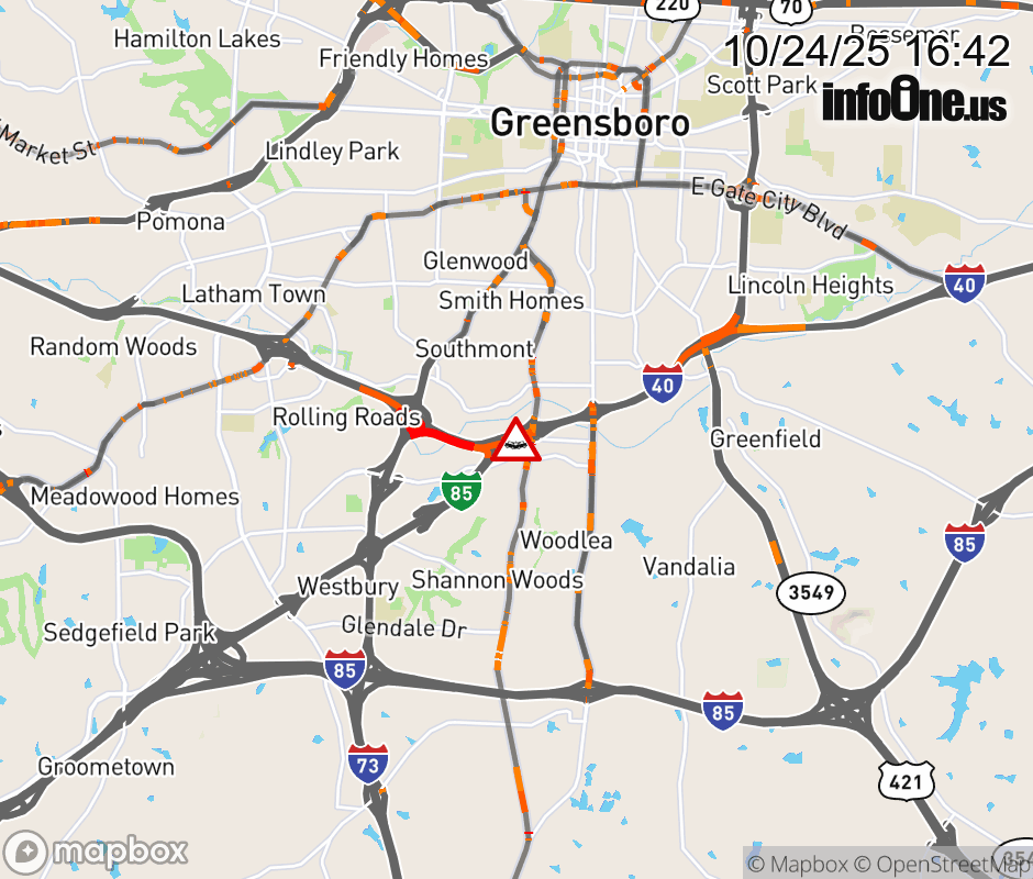The left lane is closed past Exit 220 (Randleman Rd). ![]() |