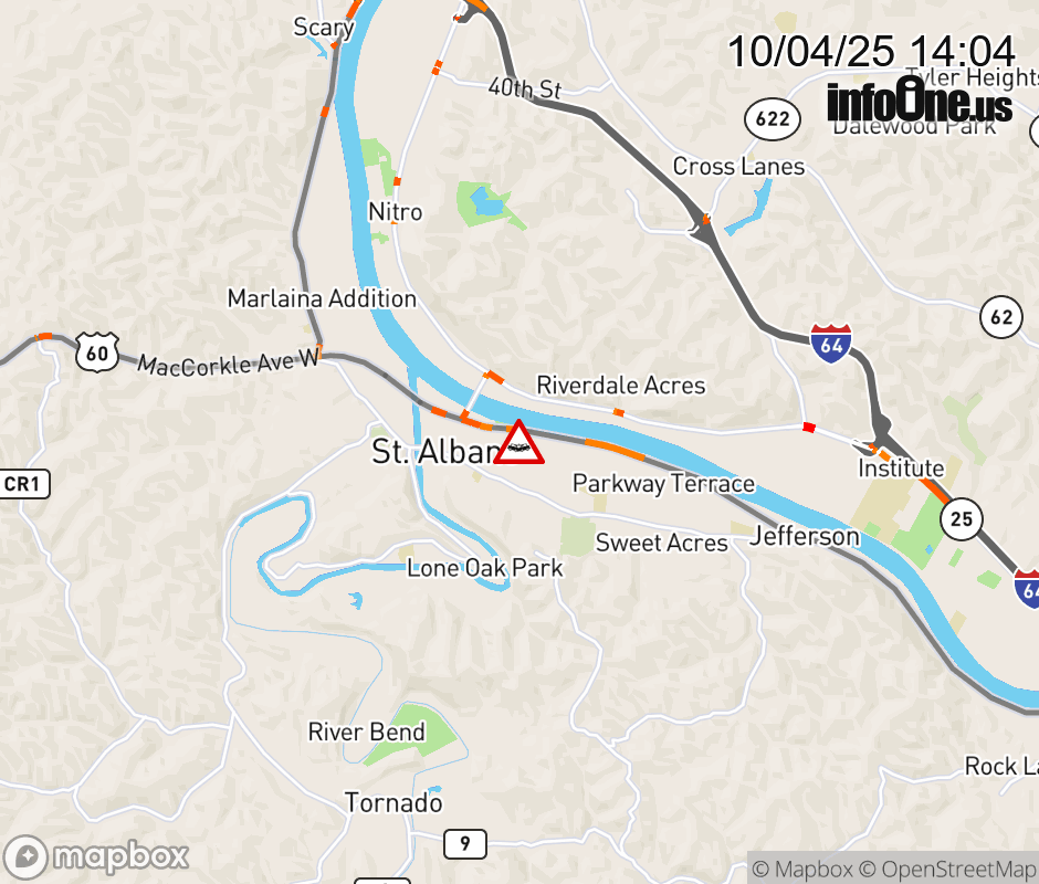 In Kanawha County there is a Vehicle Crash on US-60E at Mile Marker 4.32. 1400 BLK of MacCorkle Ave SW in St Albans. ![]() |