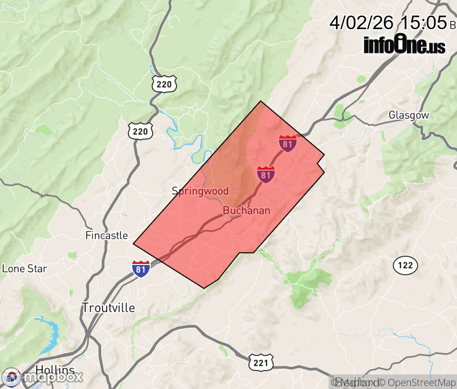 Canceled 4/2/26 3:30 PM Special Weather Statement issued April 2 at 3:04PM EDT by NWS Blacksburg VA At 303 PM EDT, Doppler radar was tracking a strong thunderstorm over Buchanan, moving northeast along I-81 at 20 mph. HAZARD...Wind gusts up to 40 mph and pea size hail. SOURCE...Radar indicated. IMPACT...Gusty winds could knock down tree limbs and blow around unsecured objects. Locations impacted include... Buchanan... Arcadia... Springwood... and Lithia. ![]() |