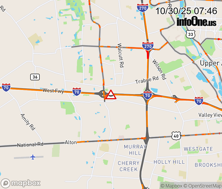 The right shoulder is blocked on I-70 East beyond Hilliard - Rome Rd, due to a crash. ![]() |