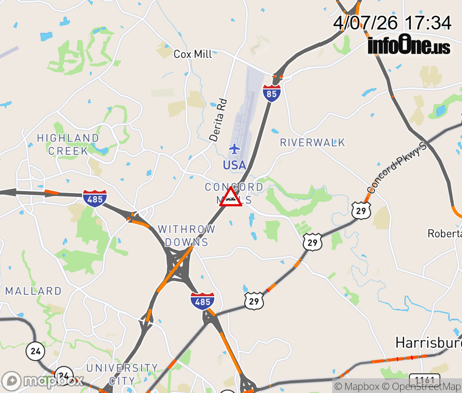 The right lane is closed at Exit 49 (Bruton Smith Blvd). ![]() |