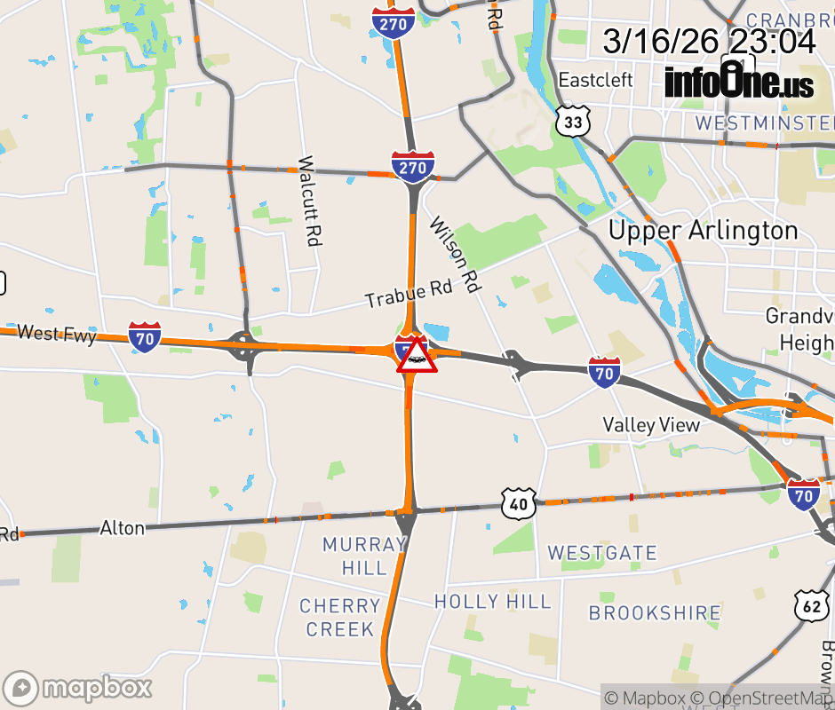 Ramp I-70 East to I-270 North CLOSED because of a crash. ![]() |