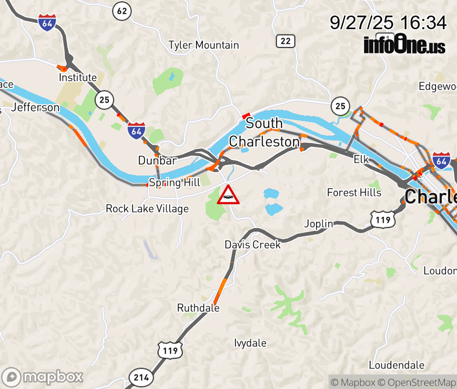 In Kanawha County there is a Vehicle Crash on WV-601 at Mile Marker 1.07. Dapplewood Road. Current lanes impacted: RIGHT LANE.Comments:Northbound Right Lane Blocked. Updated: Sat 9/27/25 4:34 PM EDT ![]() Updated: Sat 9/27/25 4:34 PM EDT |