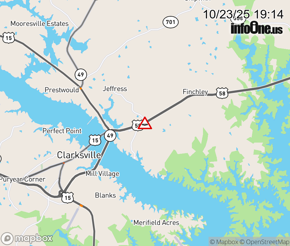 On US-58 East in the County of Mecklenburg, in the vicinity of Commerce Dr; Rt. 702N/S (Mecklenburg County); Rt. 885N/S (Mecklenburg County), motorists can expect delays due to a vehicle crash. Updated: Thu 10/23/25 7:14 PM EDT ![]() Updated: Thu 10/23/25 7:14 PM EDT |