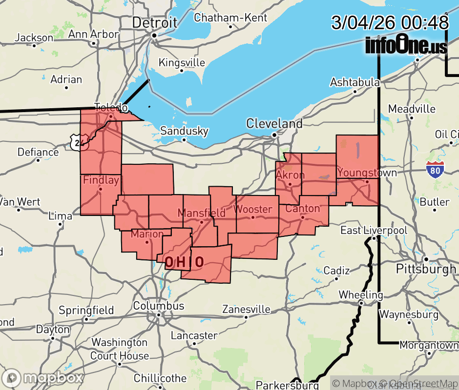 Canceled 3/4/26 8:18 AM Dense Fog Advisory issued March 4 at 12:47AM EST until March 4 at 11:00AM EST by NWS Cleveland OH * WHAT... Visibility one-quarter of a mile or less in dense fog. * WHERE... Portions of north central, northeast, and northwest Ohio. * WHEN... Until 11 AM EST this morning. * IMPACTS... Low visibility could make driving conditions hazardous. ![]() |
