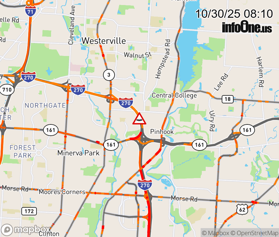 Expect lane closures on I-270 South at SR-161/Dublin Granville Rd, due to a crash. Updated: Thu 10/30/25 8:10 AM EDT ![]() |