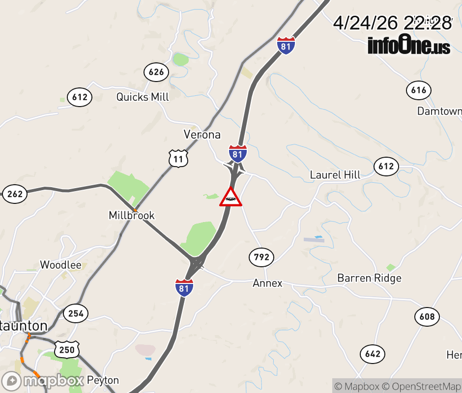 On I-81 at mile marker 227 in the County of Augusta, motorists can expect delays due to a vehicle crash. The north right shoulder is closed. ![]() |