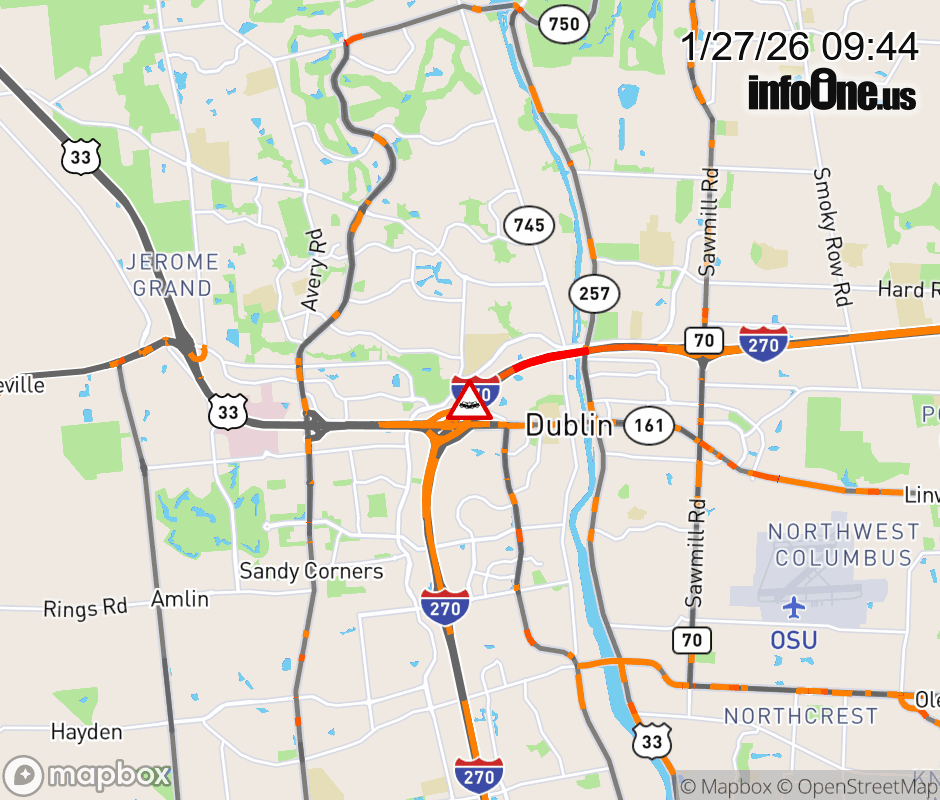 Expect lane closures on I-270 West beyond US-33/SR-161 West, due to a crash. ![]() |