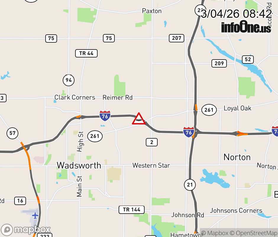 Expect lane closures on I-76/US-224 East at SR-261/Akron Rd, due to a crash. ![]() |