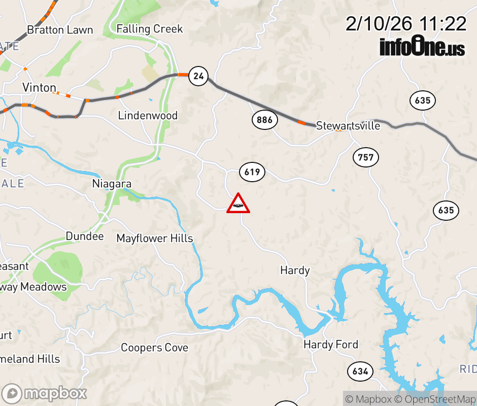 On Rt. 634 in the County of Bedford, in the vicinity of Calvert Rd; Rt. 788E/W (Bedford County), motorists can expect delays due to a vehicle crash. All north lanes are closed. All south lanes are closed. Updated: Tue 2/10/26 11:22 AM EST ![]() Updated: Tue 2/10/26 11:22 AM EST |