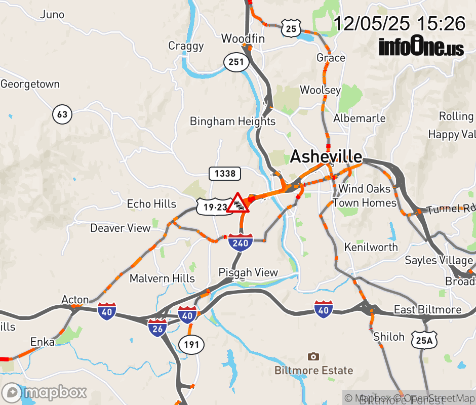 The left lane is closed in both directions near Hazel Mill Road. Updated: Fri 12/5/25 3:26 PM EST ![]() Updated: Fri 12/5/25 3:26 PM EST |