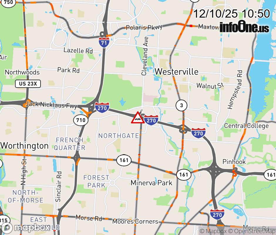 The right lane is blocked on I-270 East beyond SR-710/Cleveland Ave, due to a disabled vehicle. ![]() |
