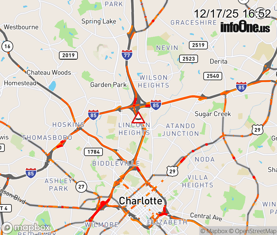 Crash on I-77 North Bound at exit 13 A, to I-85 North Bound. The right exit ramp lane is blocked. Updated: Wed 12/17/25 4:52 PM EST ![]() Updated: Wed 12/17/25 4:52 PM EST |