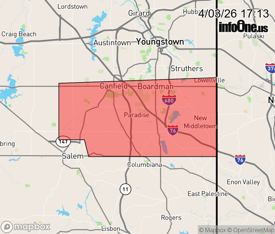 Canceled 4/3/26 5:45 PM Special Weather Statement issued April 3 at 5:12PM EDT by NWS Cleveland OH At 512 PM EDT, Doppler radar was tracking a strong thunderstorm near Salem, moving east at 25 mph. HAZARD...Wind gusts up to 50 mph and pea size hail. SOURCE...Radar indicated. IMPACT...Gusty winds could knock down tree limbs and blow around unsecured objects. Minor hail damage to vegetation is possible. Locations impacted include... Salem, Columbiana, Boardman, Canfield, Struthers, Poland, Ellsworth, New Middletown, Lowellville, and Greenford. ![]() |