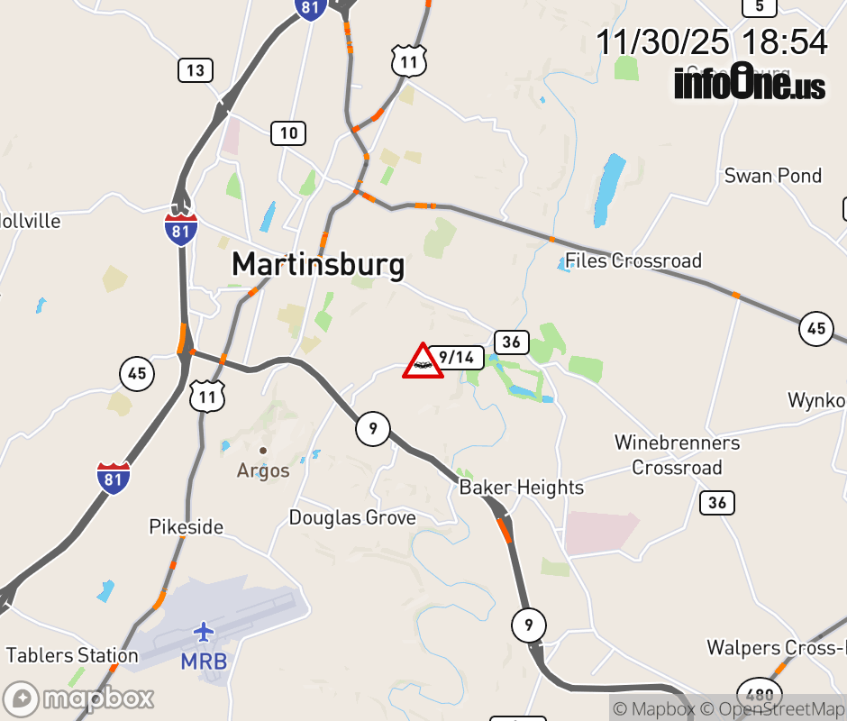 Vehicle Crash on CR-9/14 (Area of 1030 Grapevine Rd) in Martinsburg. ![]() |