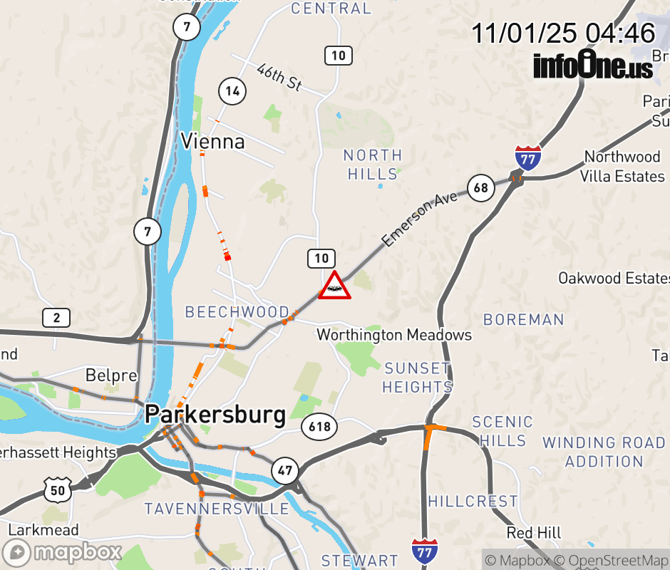 Vehicle Crash on WV-68 (4539 Emerson Ave, Parkersburg). Updated: Sat 11/1/25 4:46 AM EDT ![]() Updated: Sat 11/1/25 4:46 AM EDT |