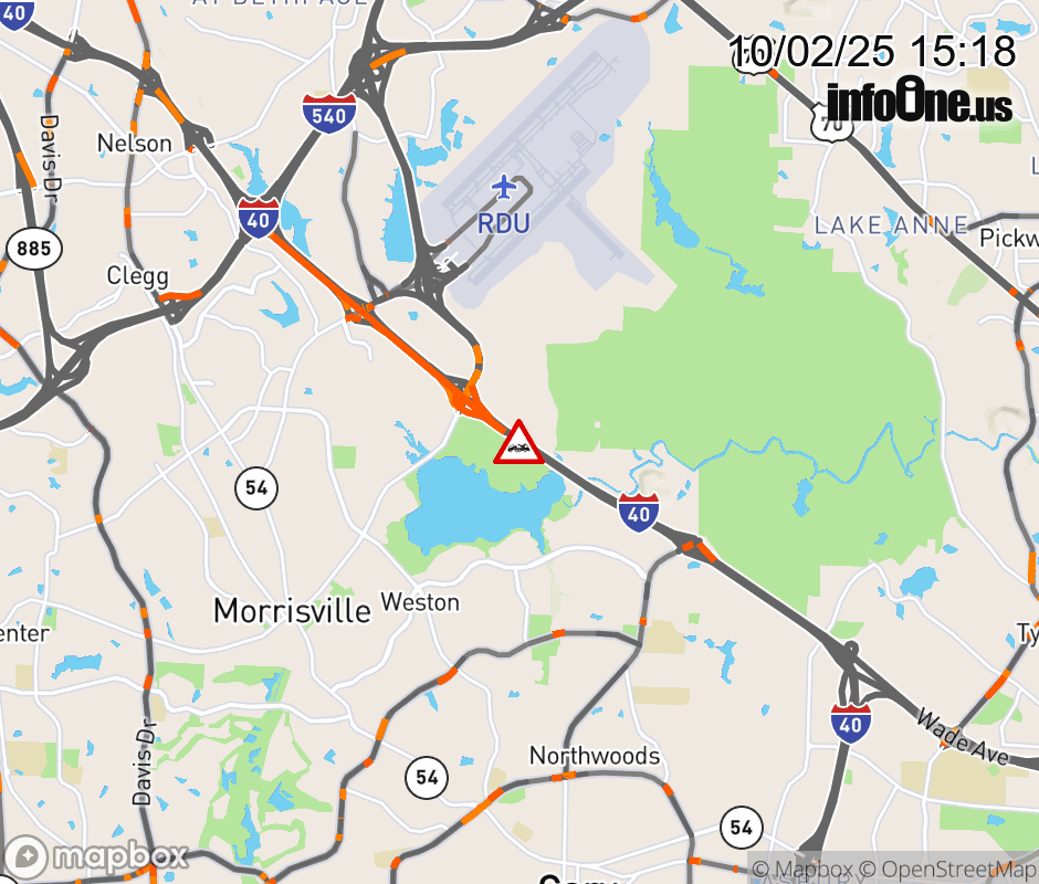 The right shoulder is closed past Exit 285 (Aviation Pkwy). ![]() |