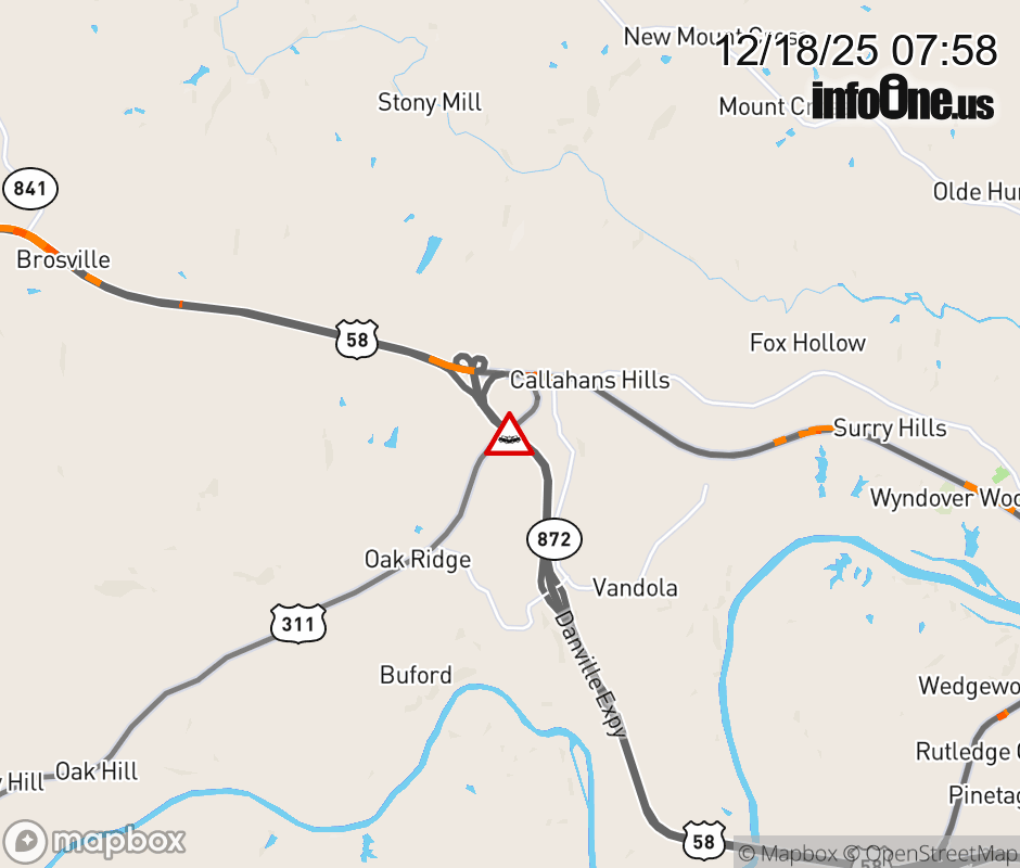 On US-58 in the County of Pittsylvania, in the vicinity of Ramp Intersection, motorists can expect delays due to a tractor trailer crash. The east right shoulder is closed. Updated: Thu 12/18/25 7:58 AM EST ![]() Updated: Thu 12/18/25 7:58 AM EST |