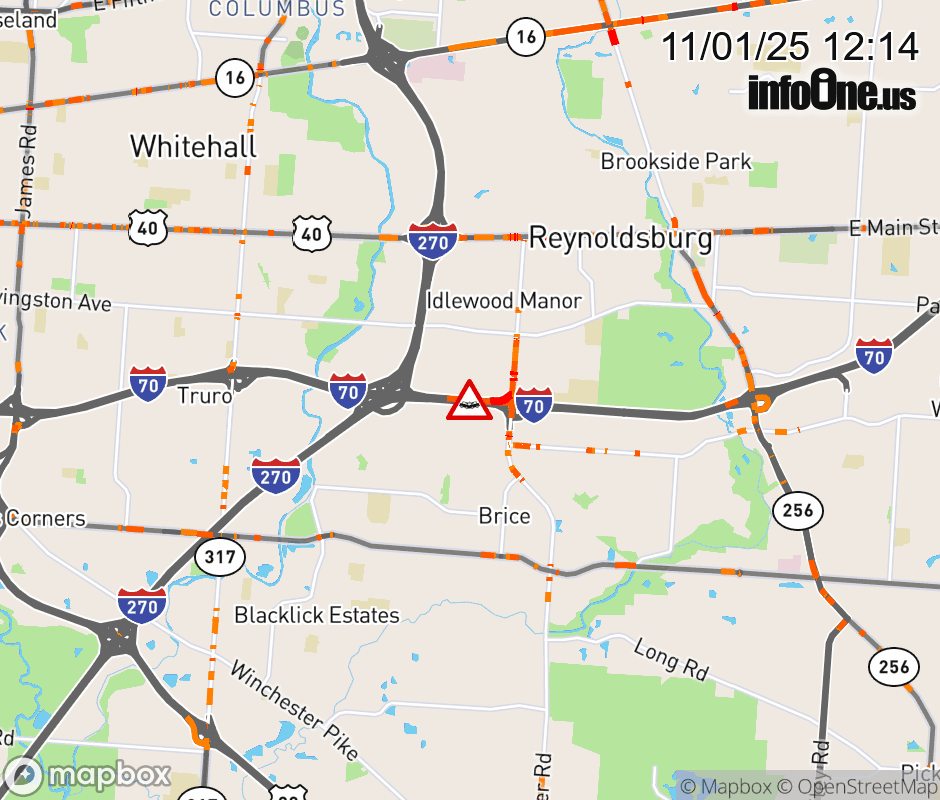 The right lane is blocked on I-70 West beyond Brice Rd, due to a crash. ![]()  |