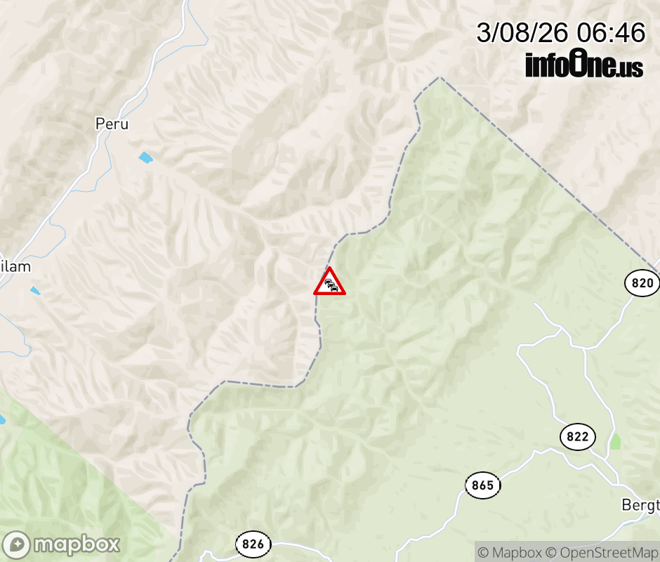 Road Closure on CR-7/2 (Peru Hollow Road) at WV - VA Line. The northbound road is closed. The southbound road is closed. Updated: Sun 3/8/26 6:46 AM EDT ![]() Updated: Sun 3/8/26 6:46 AM EDT |
