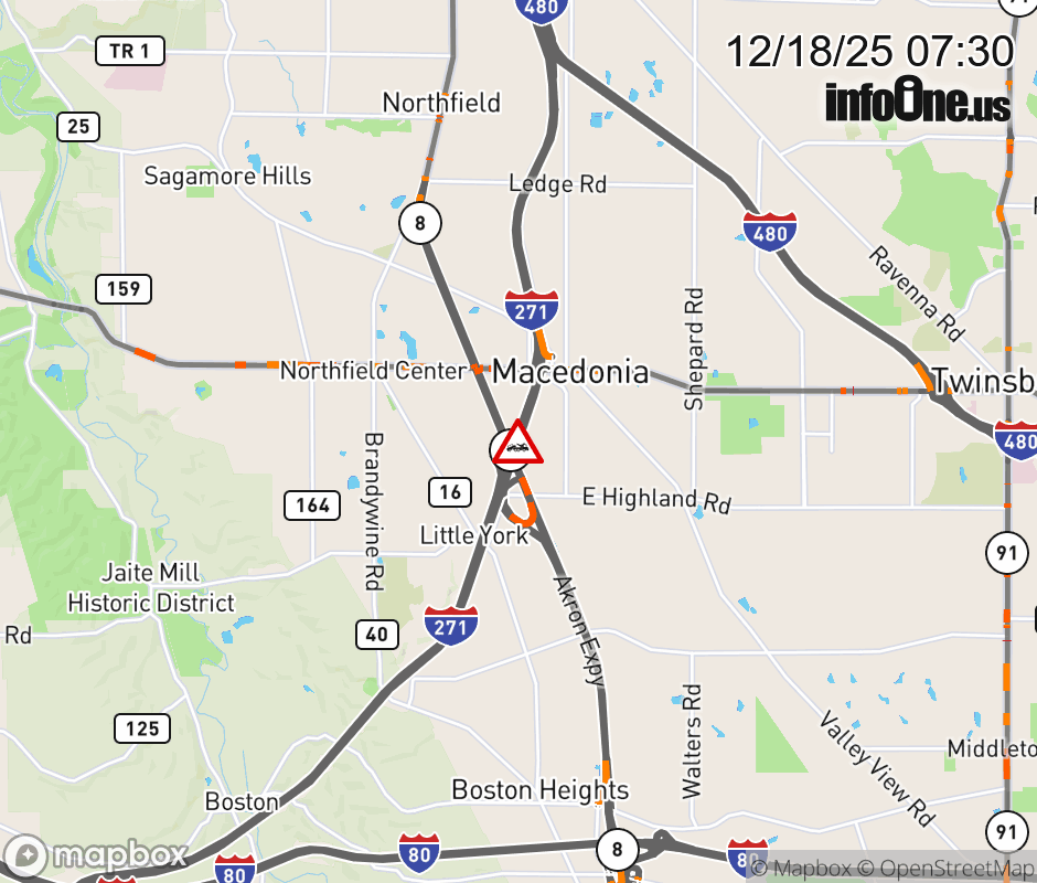 The left shoulder is blocked on I-271 North beyond SR-8, due to a disabled vehicle. ![]() |