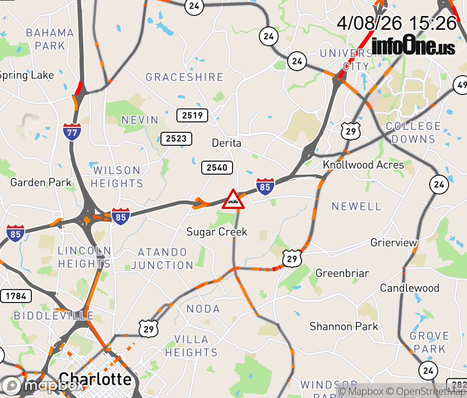 The right ramp lane is closed at Exit 41 (W Sugar Creek Road). ![]() |